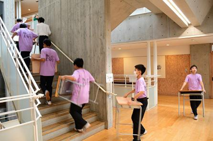 まずは、全校を挙げての《物品移動》。多くの物品を協力し合いながら移動させることで、団結力が高まりました。「秀峰祭がいよいよ始まる!」と実感する時間となりました。